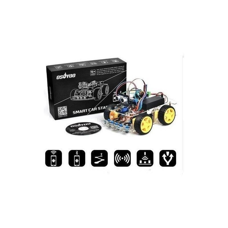 KIT DE AUTO ROBOT INTELIGENTE ARDUINO Y PIEZAS ENSAMBLABLES CON SENSOR ULTRASÓNICO Y MODULO BLUETOOTH.