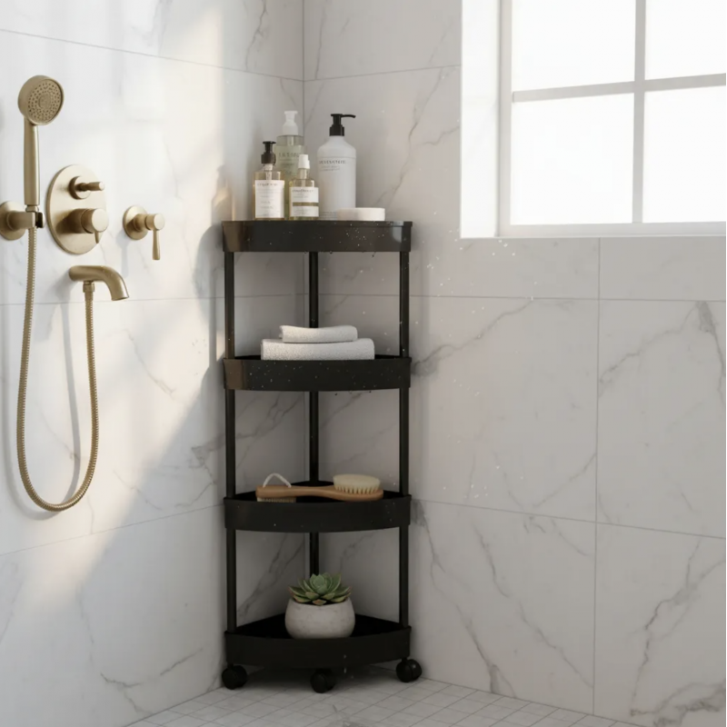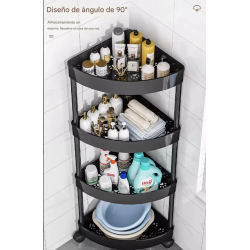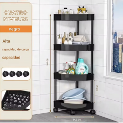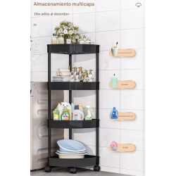 Este carrito esquinero de cuatro estantes es una solución práctica para organizar espacios pequeños en el hogar. Su diseño delgado y funcional permite aprovechar rincones y zonas estrechas, manteniendo todo en orden sin ocupar demasiado espacio.