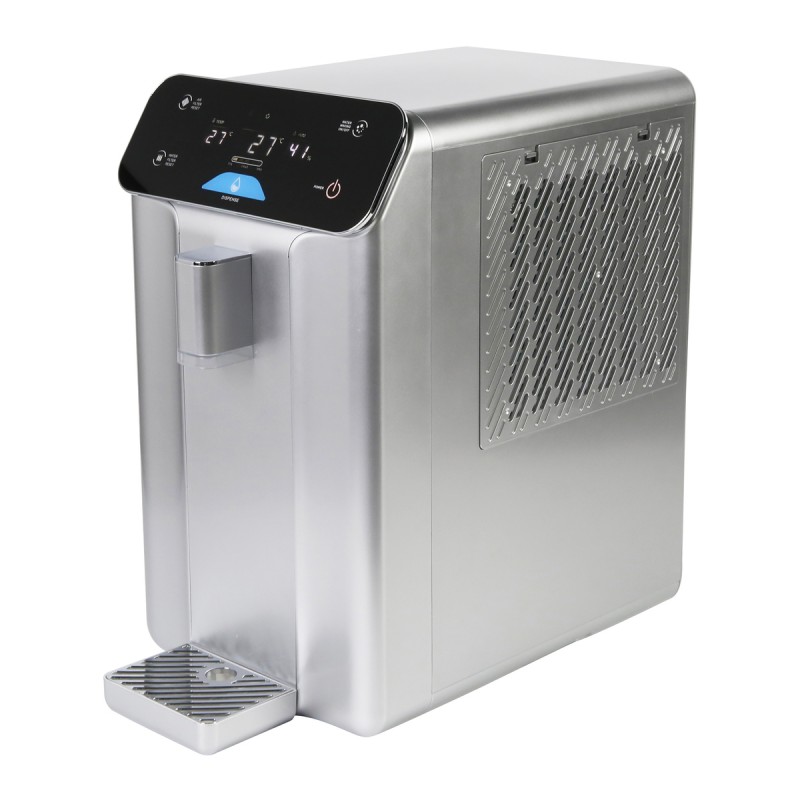 BIENVENIDO A MAQUINDUSTRIACOM Generador de Agua Atmosférica de Escritorio, diseñado para producir agua potable a partir de la humedad del aire sin necesidad de plomería. Ideal para oficinas, hogares y espacios con acceso limitado a agua filtrada. Su sistema compacto y eficiente garantiza agua fresca y segura con un consumo energético optimizado. CARACTERÍSTICAS Capacidad de producción: 10 litros por día (a menos de 30 % RH y 80 % de humedad) Temperatura del agua fría: 8 °C – 12 °C Certificación: CE Tasa de impermeabilidad: TBA Compresores: 1 Sistema de filtración con vida útil de 3000 L Recordatorio automático de cambio de filtro Sistema antichoque eléctrico integrado Refrigerante: R134a Nivel de sonido: 42 dB Tasa media de defectos: 1.50 % Capacidad de carga (20'GP / 40'GP / 40'HQ): 336 / 672 / 840 piezas ESPECIFICACIONES FÍSICAS Peso neto: 14 kg Dimensiones: 26 × 34.8 × 44.5 cm (sin salida de agua) ENTREGA Envío gratis a toda la República Mexicana Tiempo estimado de entrega: 20 días
